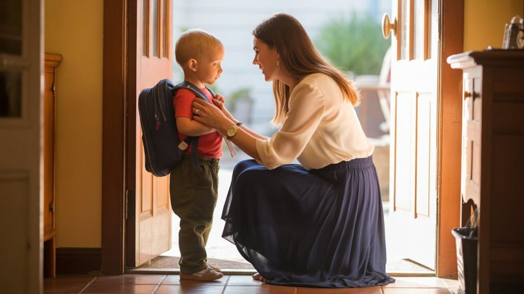 - Crie rituais de despedida: um beijo especial, uma frase carinhosa, um “tchau” combinado. Rituais previsíveis acalmam a criança.